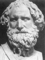 古希臘偉大的數學家兼科學家。他一生專心研究科學上的體積和浮力問題;應用槓桿原理於戰爭,保衛西拉斯鳩。他提出圓內接多邊形和相似圓外切多 邊形,當邊數足夠大時,兩多邊形的周長便一個由上,一個由下的趨近於圓周長。他先用六邊形,以後逐次加倍邊數,到了九十六邊形,求π的估計值介於3.14163和3.14286之間。阿基米得最得意的傑作是導出圓柱內切球體的體積是圓柱體積的三分之二倍。這定理就刻在他的墓碑上,也成為他名垂千古的一大註記。 |