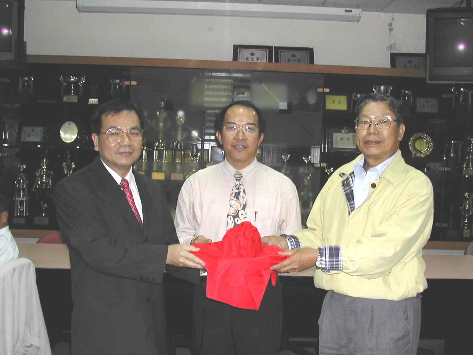 第二、三屆董事長交接,由陳前校長江源監交(右為謝董事長陸和,左為黃董事長德泉)